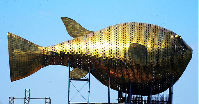 巨型“河豚”總體(tǐ)造價為7000萬元。“河豚”将近9000塊銅片沒有一(yī)塊是一(yī)模一(yī)樣的。電(diàn)梯井道位于河豚肚子中(zhōng)央。